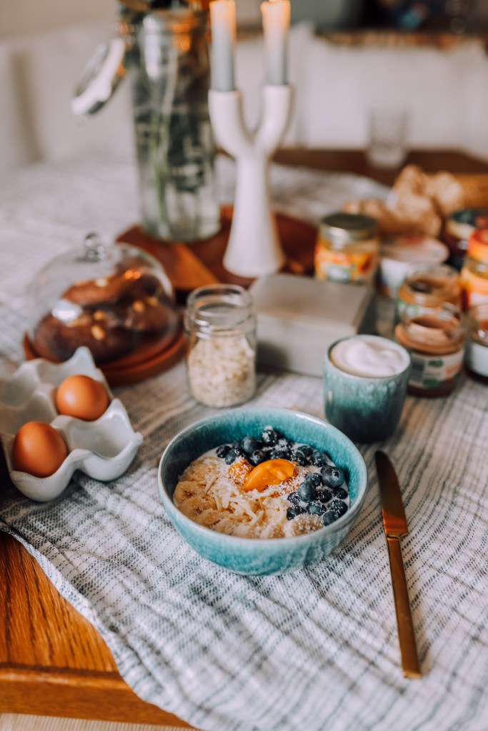 Wenn ihr euren Frühstückstisch gedeckt habt, ist natürlich wichtig was auf es auf den Teller schafft. Unser Rezept für die perfekten Frühstücksemmeln findet ihr hier. Ansonsten darf alles auf den Teller was euer Herz begehrt. Bei uns ist es meistens neben den Semmeln viele verschiedene Aufstriche und Marmeladen.
