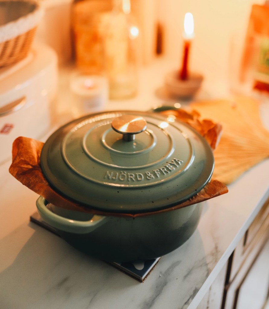 5. Den Backofen samt Gusseisentopf auf 230°C Ober/Unterhitze vorheizen (mindestens 30 Minuten, damit der Topf auch heiß wird).